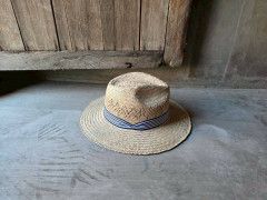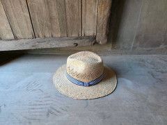 XL大頭圍寬帽沿藺草帽-藍白條紋